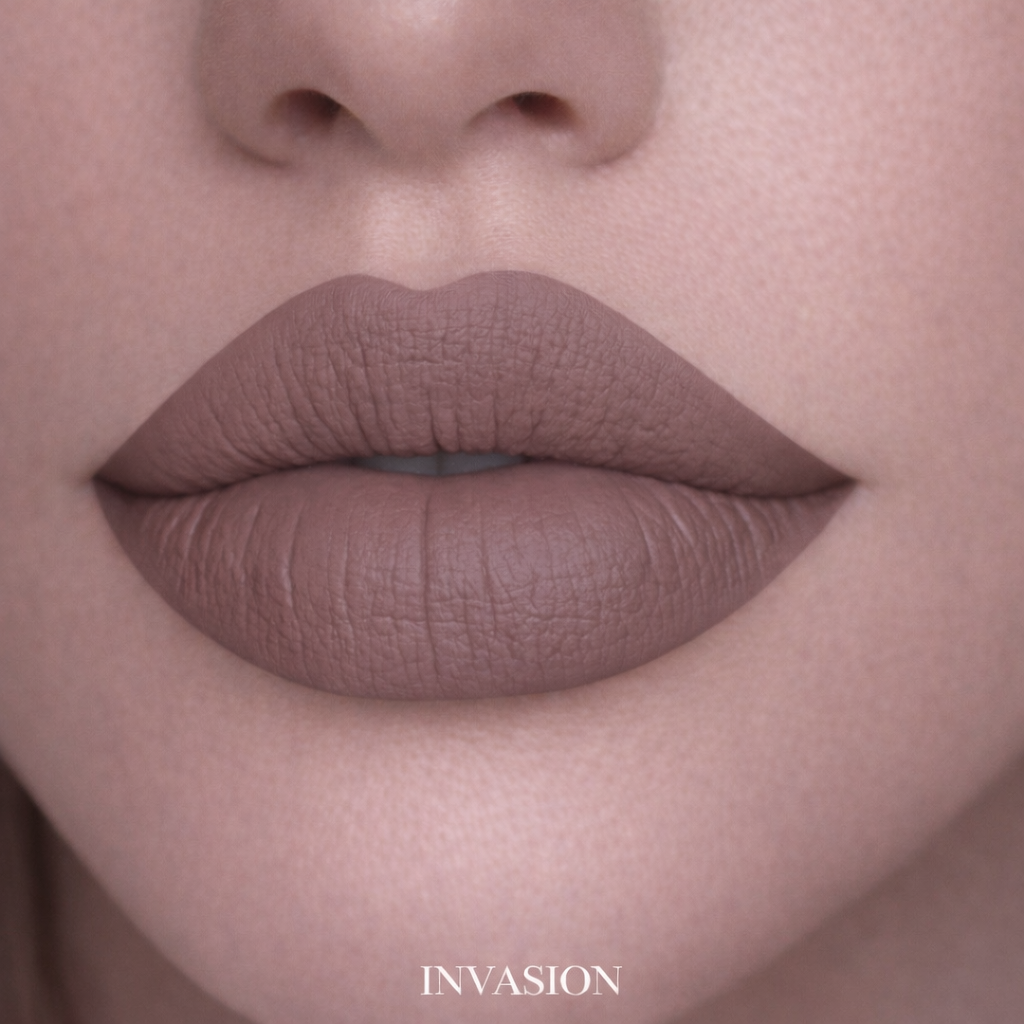 Conquer the day with Gerard Cosmetics®️ HydraMatte®️ Liquid Lipstick in Invasion, a commanding gray-toned brown that boldly stakes its claim, ensuring your look leads the charge with undeniable allure.